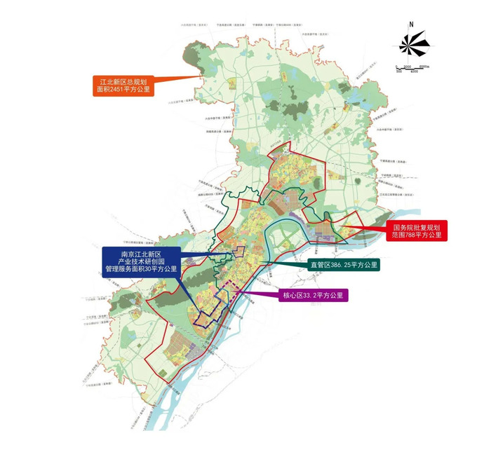 目前,江北新区核心区范围是:东沿滨江大道—横江大道,南至虎桥路,西至江北大道—浦口大道—浦滨路—五桥连接线—浦乌路,北至定向河路,总范围约33.2平方公里,较之前扩容了17.1平方公里。