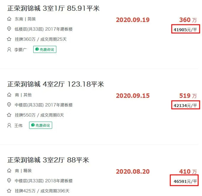 正荣润锦城,今年的成交均价较去年有着较大的提升。去年我踩盘的时候,较好房源的挂牌均价在4.1万/㎡左右,今年有所上涨。