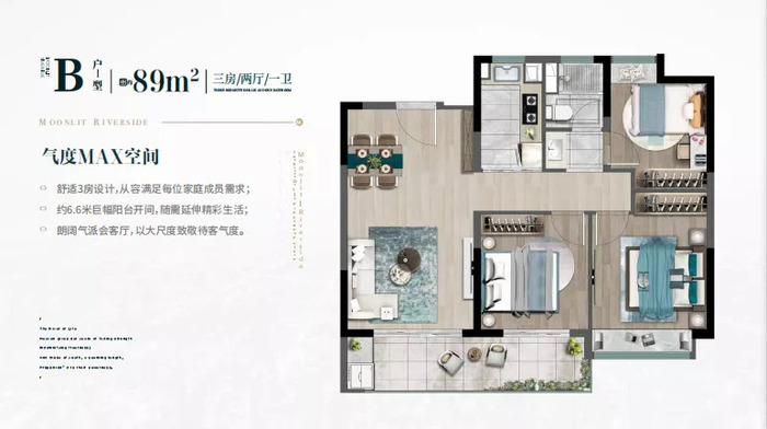 12月3日,江畔月明府领取9号楼销许,共104套房源,销许均价30586元/㎡,户型建筑面积约89、103、109㎡,精装修交付。