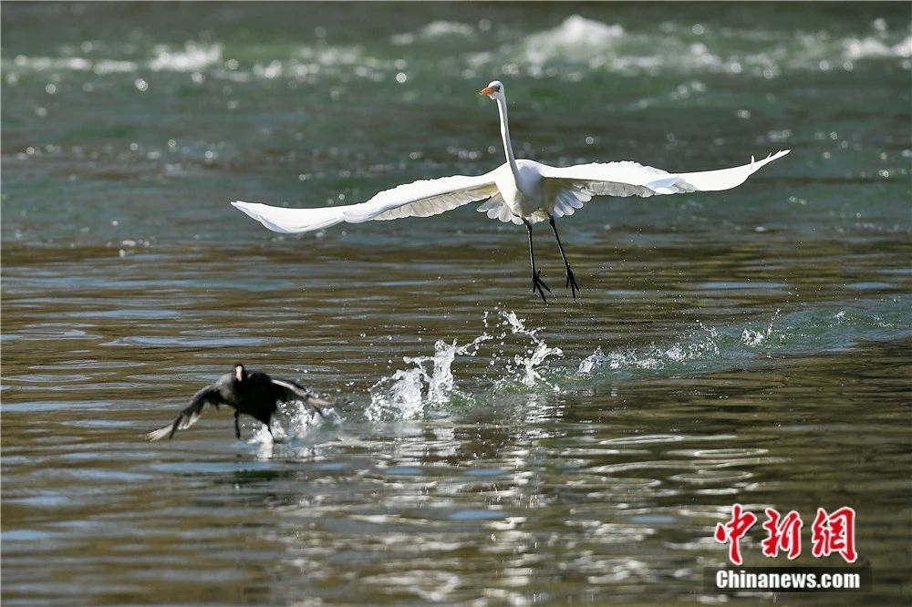 太原汾河湿地吸引众多鸟类越冬栖息 韦亮 摄