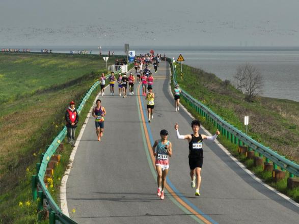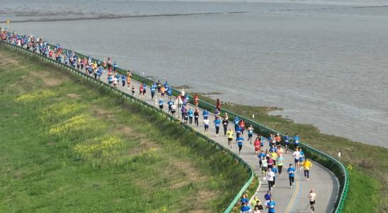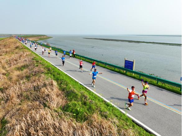 与鹤共舞的生态奇观:赛道穿越白鹤保护区,正值候鸟北归时节,跑者可近距离观赏白鹤、东方白鹳等珍稀鸟类翩跹起舞,感受“鸟浪”的震撼。