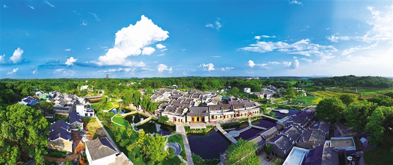相似的乡村振兴示范点,在吉安市泰和县也有一处。“树影翠浪涌,花落彩虹流”。泰和蜀口洲是赣江、蜀水合抱而成的绿色洲岛,犹如一颗镶嵌在千里赣江上的生态明珠。