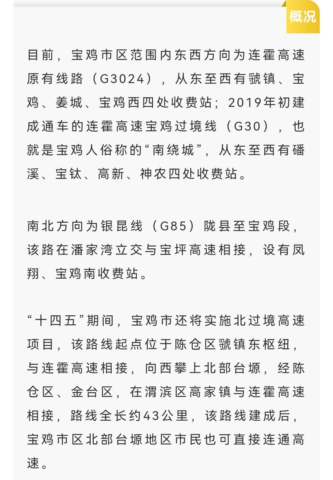 实现了市区与凤县、太白的高速连接