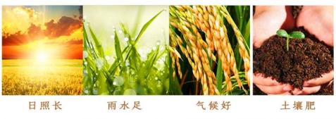 孝感大米种植区域内雨量充沛,光热充足,年平均气温为16.0℃,无霜期长,是光、热、水条件配合较好的地带,有利于稻谷生长、发育。大米产地昼夜温差大,使得营养物质积累多。孝感大米外观谷粒大、扁长、饱满,颗粒晶莹,光滑油润。