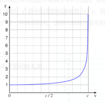 图 13:洛仑兹因子是速度的函数。它从 1 开始,随着 v 趋于 c 它趋于无穷大。