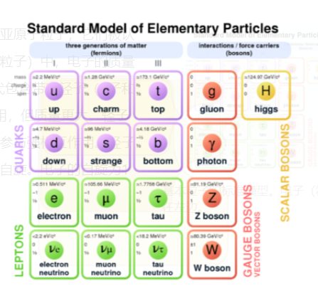 图 6:基本粒子的标准模型。电子(符号 e)在左边。