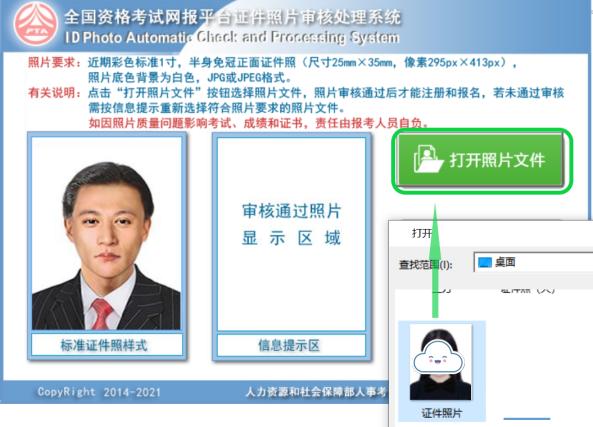 2.点击“打开照片文件”,选择自己的报考照片打开进行处理。