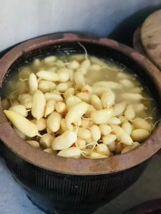 在山溪中洗净的山萝卜如一筐筐鸡蛋,在冬日的阳光下白得耀眼。阿叔早就将陶缸洗净沥干,阿婶将萝卜从缸底排列起来,排一层撒上一层盐,还要添加一把姜蒜和辣椒,阿婶说,腌萝卜和腌黄瓜不一样,黄瓜质地松软,可以不放姜蒜,但萝卜由于质地较硬,放足了姜蒜能让成品更加入味。排到离缸口一定的距离,阿叔搬来石块和磨盘,将缸口压实。