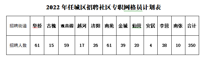 原标题:嘉诚招聘【任城区社区专职网格员350人】
