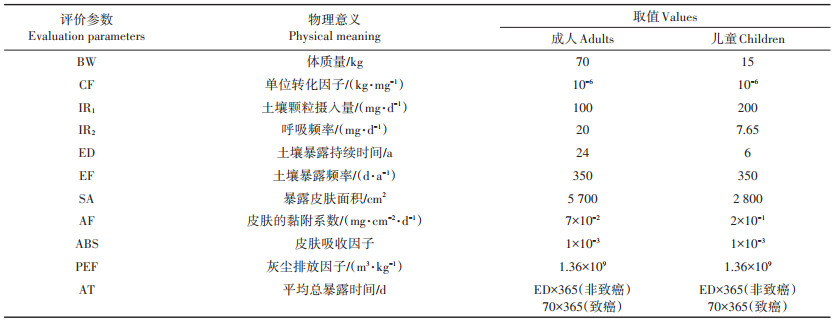 表 3 人体健康风险评价模型参数 Table 3 Parameters of human health risk assessment model