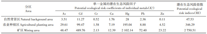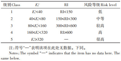 表 2 重金属潜在生态风险因子(Eri)、风险指数(RI)与风险等级 Table 2 Potential ecological risk coefficients (Eri), risk indices (RI) and risk level of heavy metals