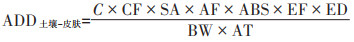 本研究采用美国环境保护局(USEPA)推荐的健康风险评估方法,计算手-口吸食、皮肤接触和呼吸吸入3种暴露途径下的日平均暴露量(ADD,mg·kg-1· d-1),评价贵州省土壤重金属暴露对附近居民造成的健康风险,其计算公式如下: