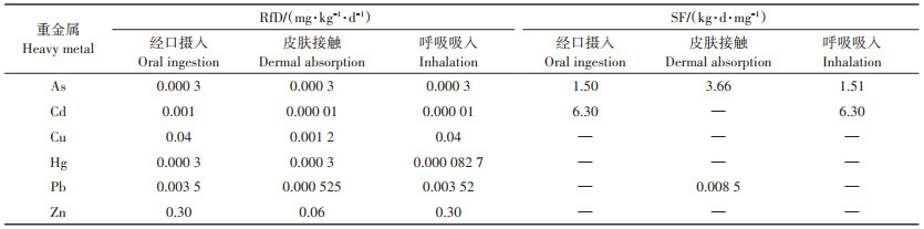 表 4 土壤重金属不同暴露途径下参考剂量(RfD)和斜率系数(SF) Table 4 Reference dose (RfD) and slope factor (SF) values of different heavy metal exposure pathways