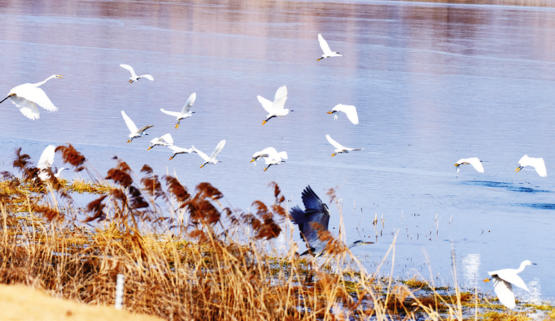 众多鸟类在千湖湿地栖息