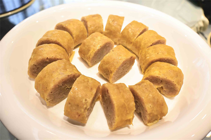 看似家常的湘乡蛋卷,在选材与搭配上却颇有讲究。采用正宗的三肥七瘦五花肉,搭配农家自制纯天然红薯粉,一斤肉泥与三两红薯粉精确配比,再融入鸡蛋与精心挑选的调味品,搅拌均匀后,蛋卷的灵魂馅料便准备就绪。将拌好的肉泥均匀铺在蛋皮上,卷紧,上锅蒸熟,切片,一盘香气四溢的蛋卷便大功告成。