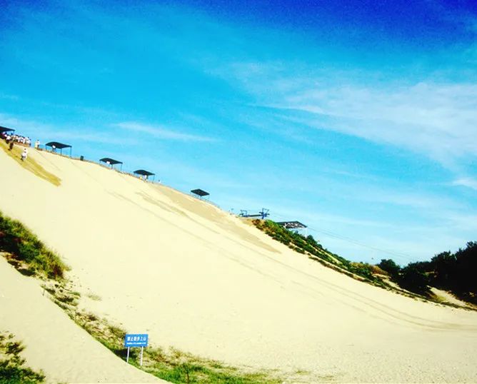 徒步登上沙丘顶端,选择不同的滑道飞驰而下,感受风驰电掣的刺激与快感。沙丘顶也是眺望渤海的好地方。