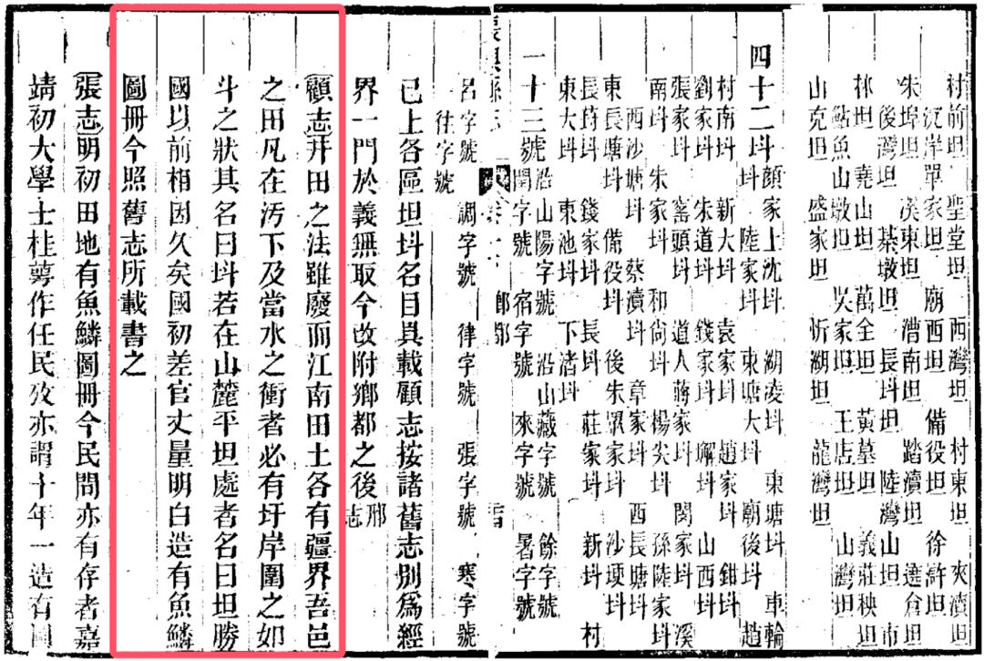 明嘉靖年间顾应祥编纂的《长兴县志》:“吾邑之田,凡在污下及当水之冲者,必有圩岸围之如斗之状,其名曰‘㘰’。”更直接形象地说明了“㘰”产生的水利环境、水利功能和工程形态特点。