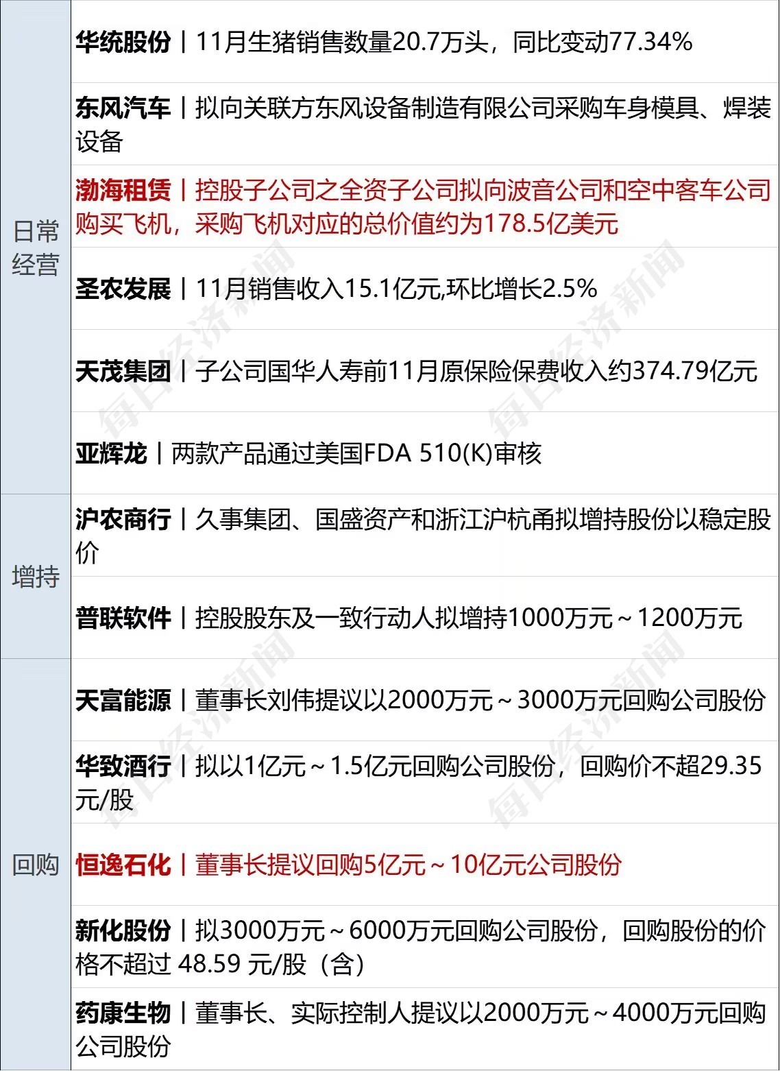 李宁(HK02331,股价19.1港元,市值501亿港元):12月12日,李宁在港交所公告,公司将于六个月期间内根据购回授权不时于公开市场购回股份。拟动用不超过30亿港元的资金购回股份。