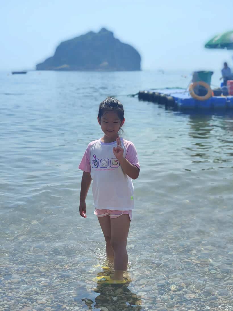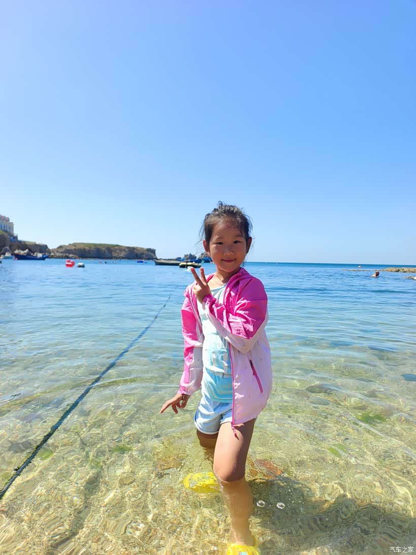 到达石槽村后,一家三口在车里换好泳衣陆续下水。石槽村的海水真的很清,可能跟游客数量少有关系,这也是大连人民公认的海水最好的浴场。来大连旅游要洗海澡的车友可以直接导航“石槽村”,这里商业气息不浓,想买点零食和水都困难,石槽村海滩浅,很适合孩子玩,遇退潮还可以赶海。最重要的一点,一定要穿沙滩鞋!