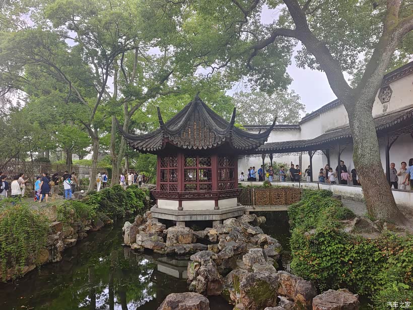 离开寒山寺景区后,我们来到苏州园林之首——拙政园。拙政园以水为主,楼阁轩榭建在池周,漏窗、回廊相连,山石、古木、花卉等构成幽远宁静画面,布局疏密自然,体现了明代园林建筑风格,有园林美学教科书之称。