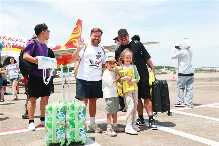 外国游客抵达三亚凤凰国际机场。记者 陈聪聪 摄