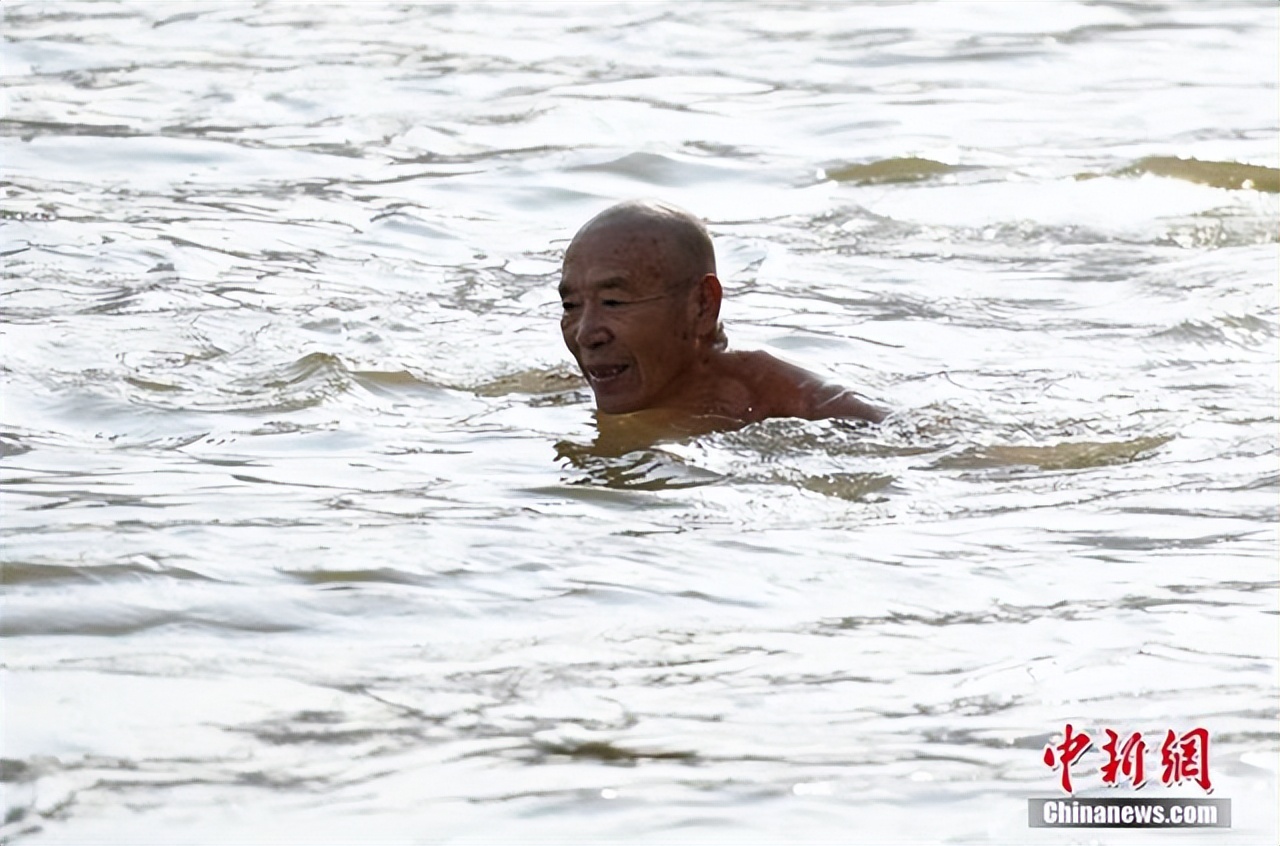 冬日里,老人在黄河中冬泳。中新社记者 九美旦增 摄