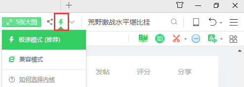 由于部分网页(例如论坛、网银等)在极速模式下出现兼容性问题,显示不正常,这时您可以手动切换到兼容模式来浏览网站,如下图所示。