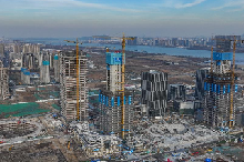 这是1月15日拍摄的江苏省南京市江北新金融中心一期项目施工现场(无人机照片)。当日,在江苏省南京市江北新金融中心一期项目施工现场,承建方中建三局运用“空中造楼机”进行项目封顶前的最后一次顶升作业,各项施工稳步推进。