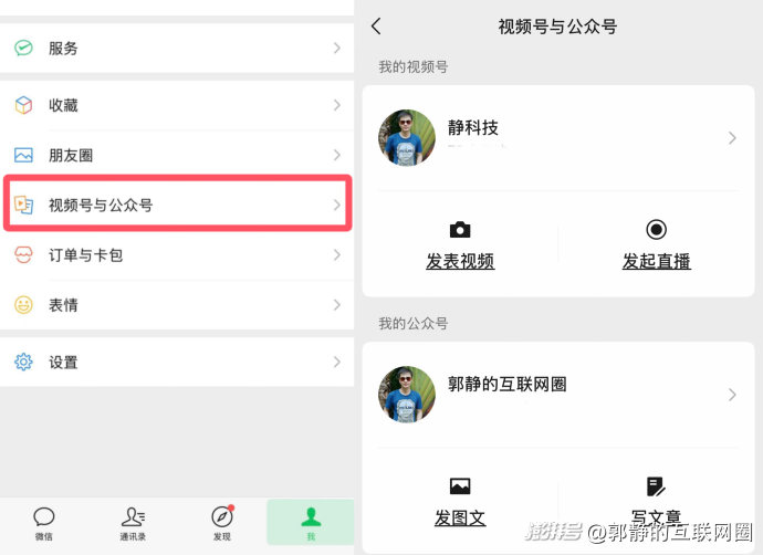 据郭静的互联网圈观察,日前,微信在其新版本中正灰度测试,公众号和视频号创作入口合并。用户将微信更新到新版本后,依次点击“我”→视频号与公众号→“我的公众号”,即可直接在自己的公众号上发图文或发文章。微信iOS最新版是8.0.64,直接在App Store中即可更新。安卓版,依次点击“我”→设置→关于微信→检查新版本,再更新即可。注意:用户要本身已经开通了视频号和公众号才会出现“视频号与公众号”按钮。