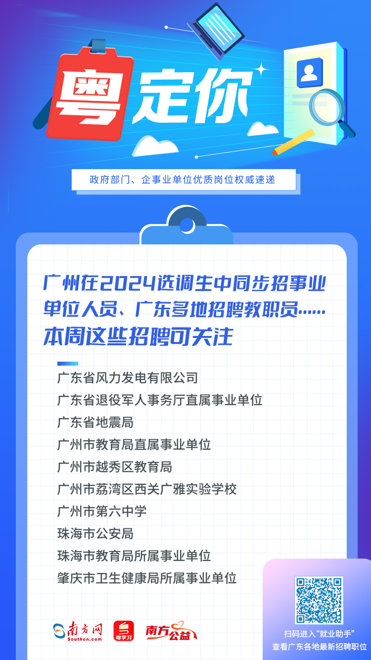 广州在2024选调生中同步招事业单位人员、广东多地招聘教职员……本周这些招聘可关注