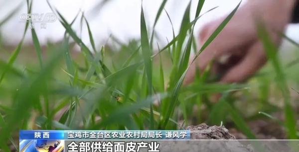 总台央视记者 施韶宇:我现在所在的地方是宝鸡市金台区,旁边就是擀面皮企业的小麦种植基地。这个小麦从品种选择到田间管理再到最后收获,都是按照擀面皮企业的标准来进行操作。