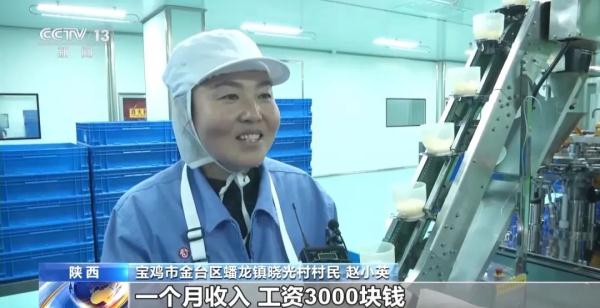 陕西省宝鸡市金台区蟠龙镇晓光村村民 赵小英:我在这个厂打工,一个月工资3000块钱。