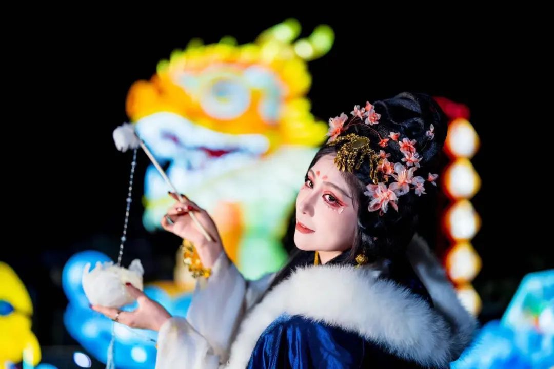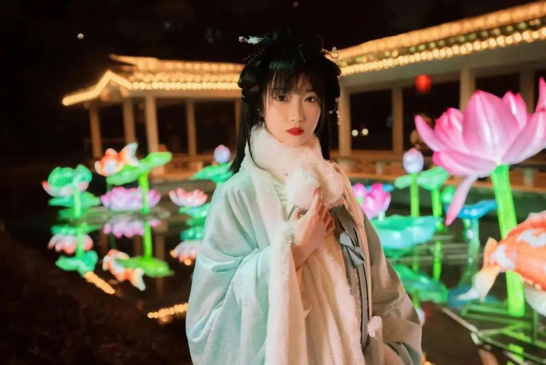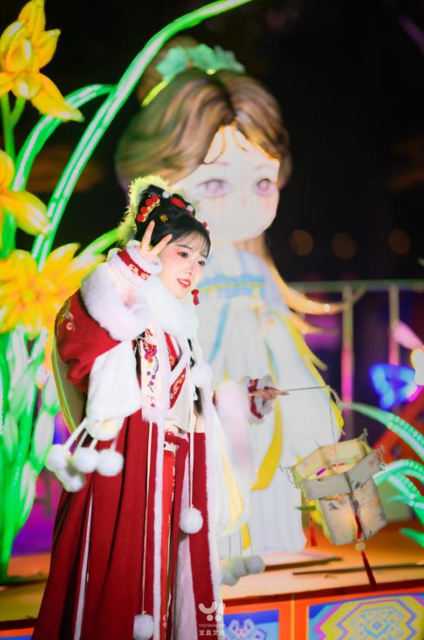 在灯会现场专设了汉服租赁和拍照点,为游客提供自助服务。换上汉服,沉浸在美轮美奂的灯组中,拍一组美照,让年味儿更绵长。