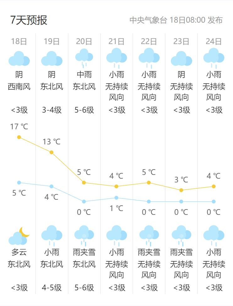 2月19日:阴天转小雨,高山地区小雨转雨夹雪;