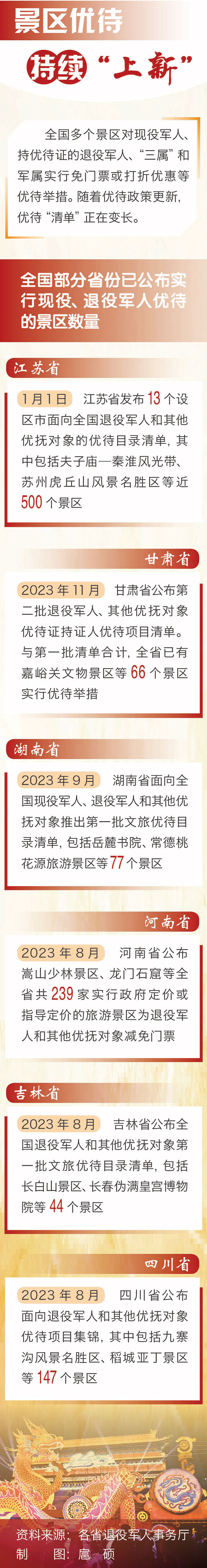 2023年以来,全国多个省区出台政策,发布优待清单、新增优待项目、加大优待力度,文旅优待成为其中的重要组成部分。“景区免首道门票”“军属购票优惠”等一系列举措,温暖了军人军属、退役军人和其他优抚对象的出行路,也拓展了“让军人成为全社会尊崇的职业”的外延。