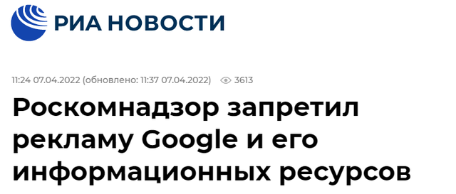 图源:俄新社——俄联邦电信、信息技术和大众传媒监管局禁止谷歌及其下属信息资源平台投放广告