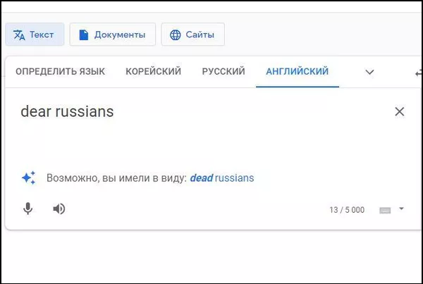 俄罗斯《商业咨询日报》4月12日报道称,此前有不少俄罗斯网民发现,在谷歌翻译程序中用英语输入“亲爱的俄罗斯人”时,出现的俄语译文却是“死去的俄罗斯人”。但在输入其他国家的类似词语时,却没有出现这样的错误。