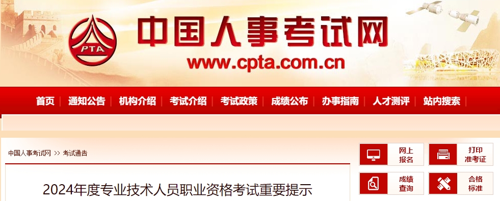 中国人事考试网发布的《2024年度专业技术人员职业资格考试重要提示》,截图如下: