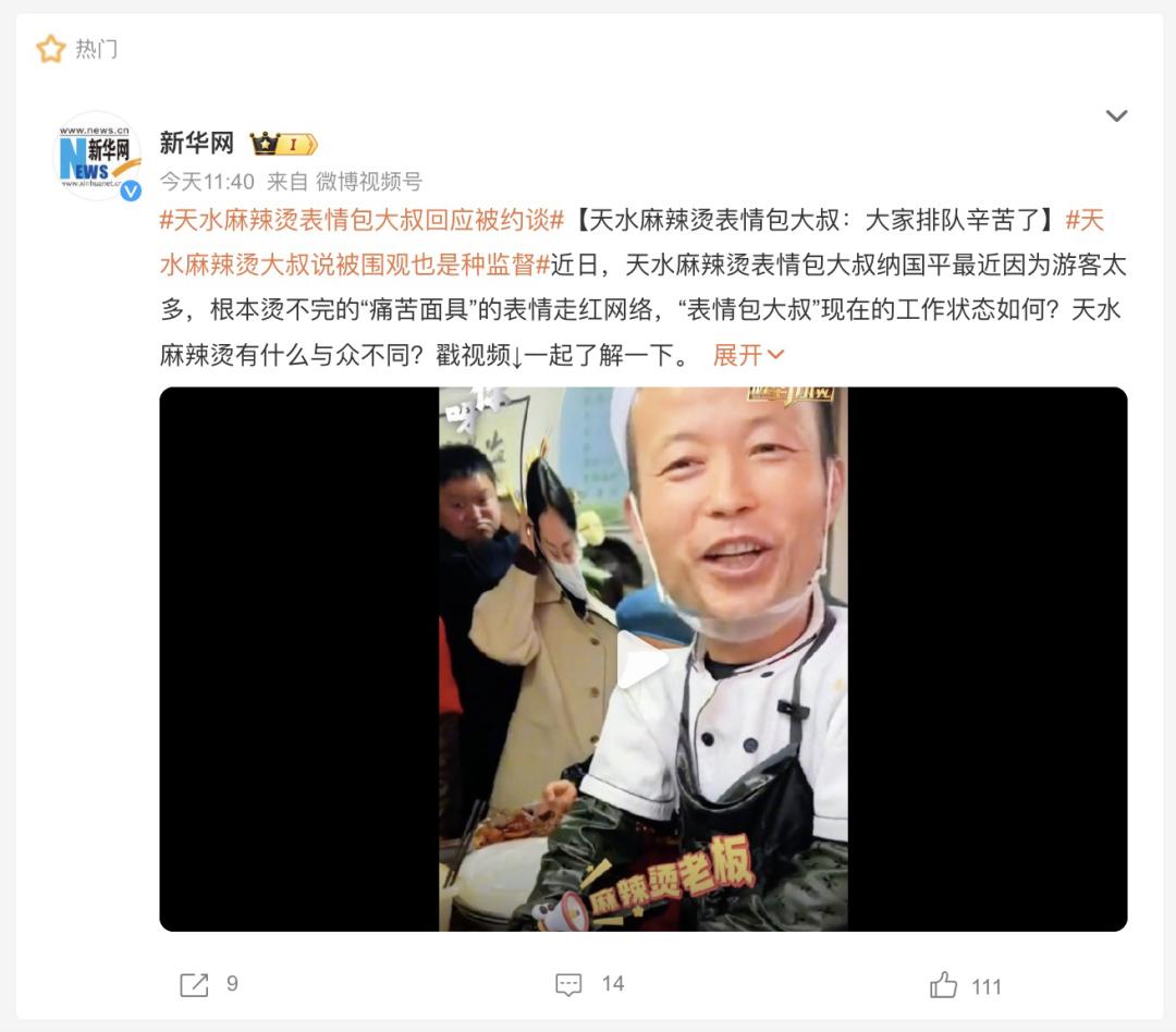 因麻辣烫走红的天水麻辣烫大叔。来源/新浪微博截图
