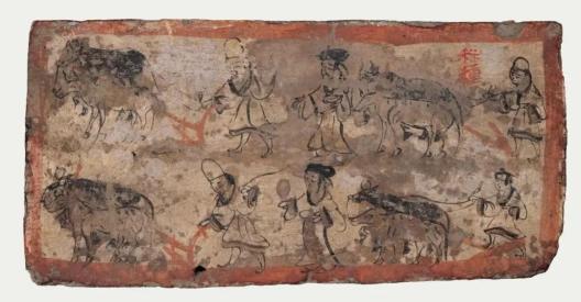“耕种图”壁画砖。来源/甘肃省博物馆
