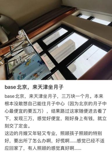 而事实上,去天津、燕郊这些地方坐月子,最开心的往往不只是产妇,而是陪护的家里人。