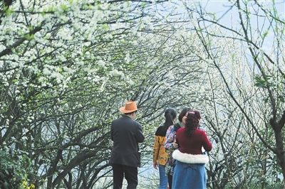 “又是一年芳草绿,漫山遍野李花开。”漫山遍野的李花迎春绽放,洁白似雪、清香扑鼻,美丽的景色引得周边游客纷至沓来。