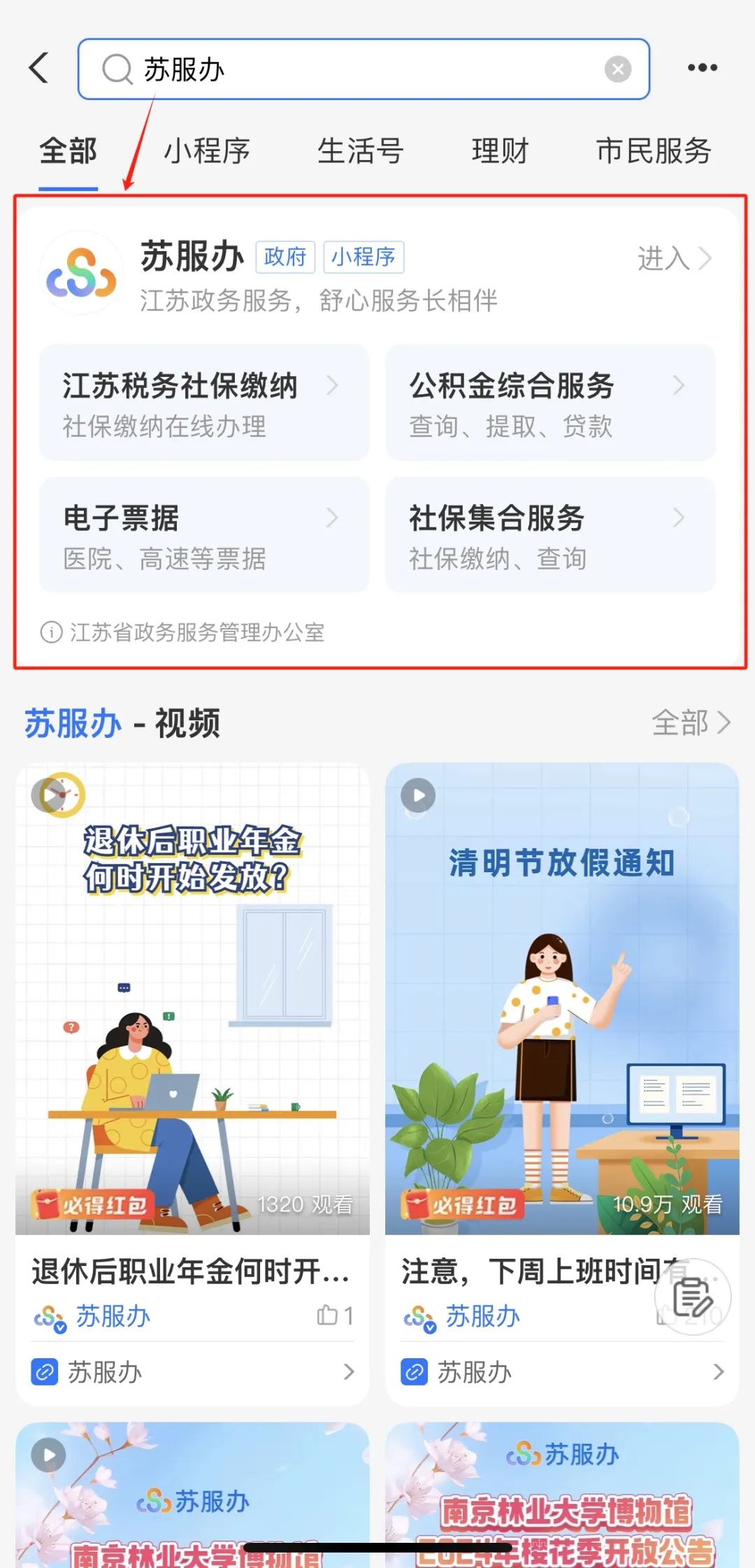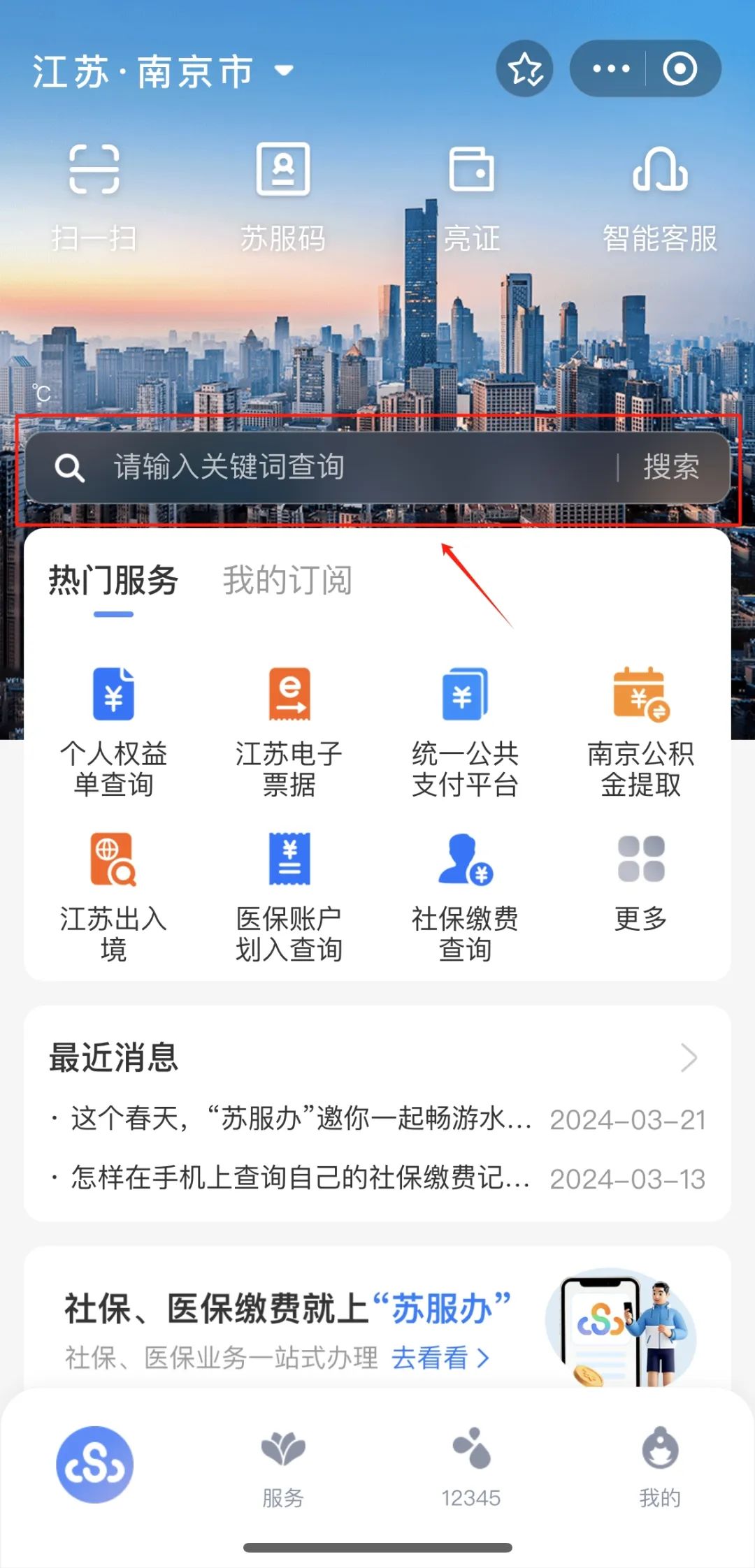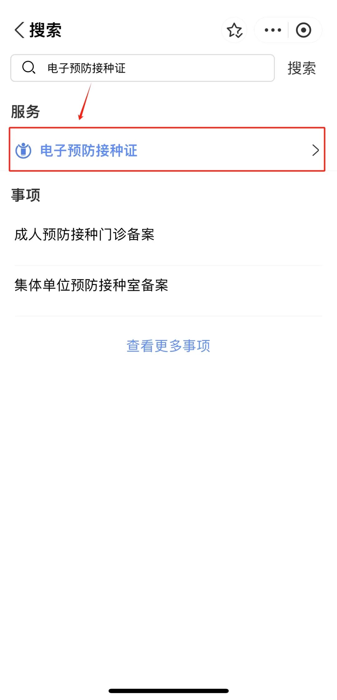 在支付宝首页搜索“苏服办”,进入小程序,在首页搜索“电子预防接种证”,进入服务。