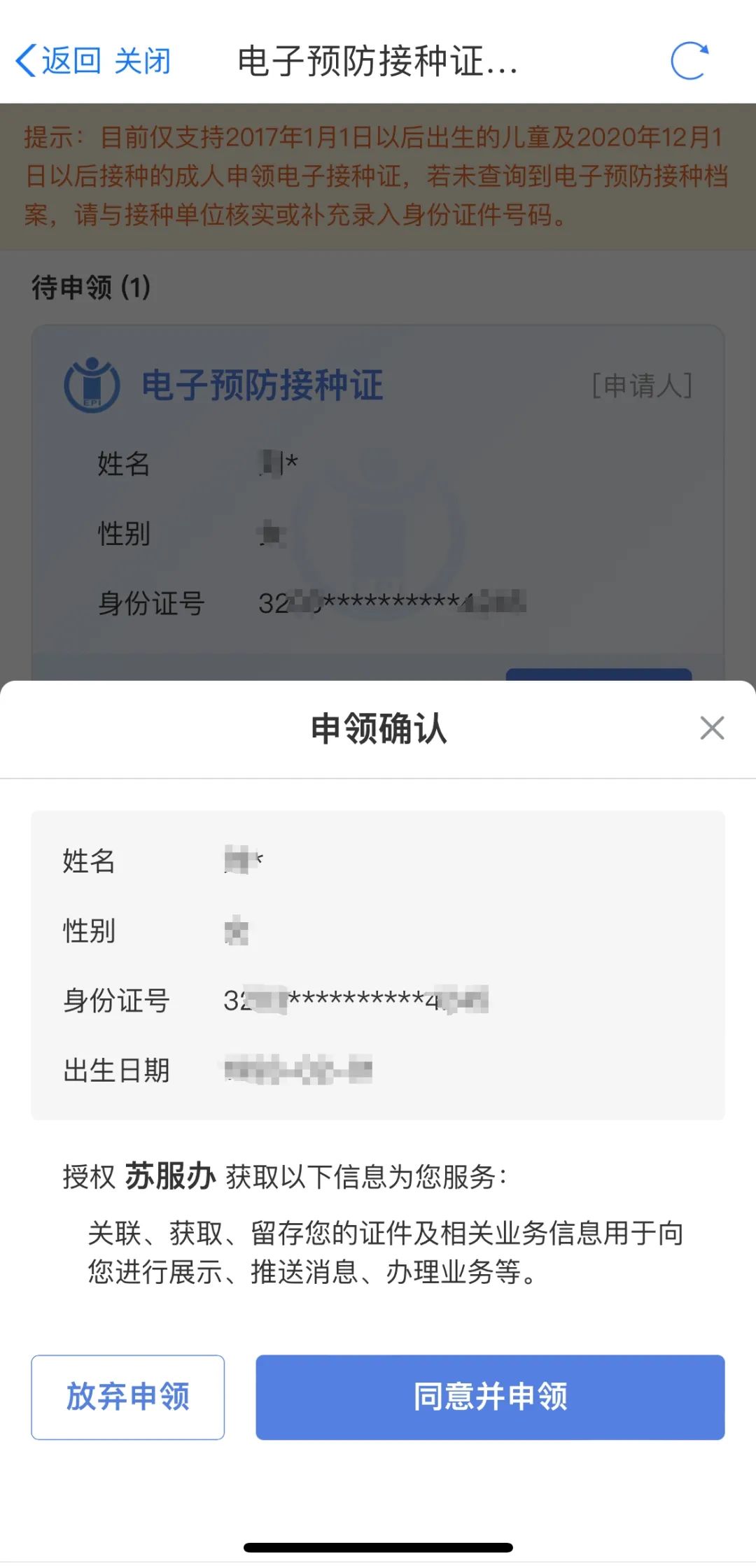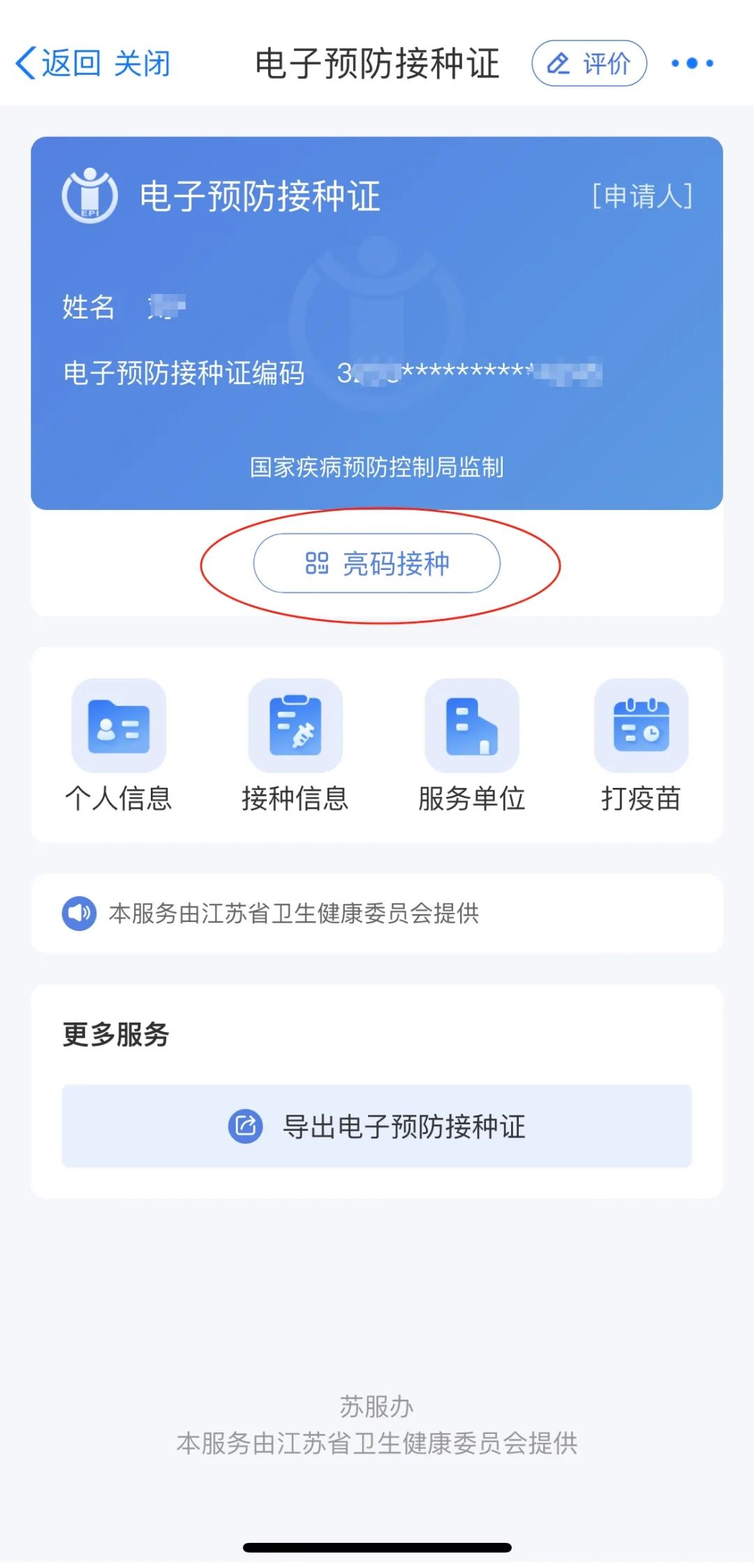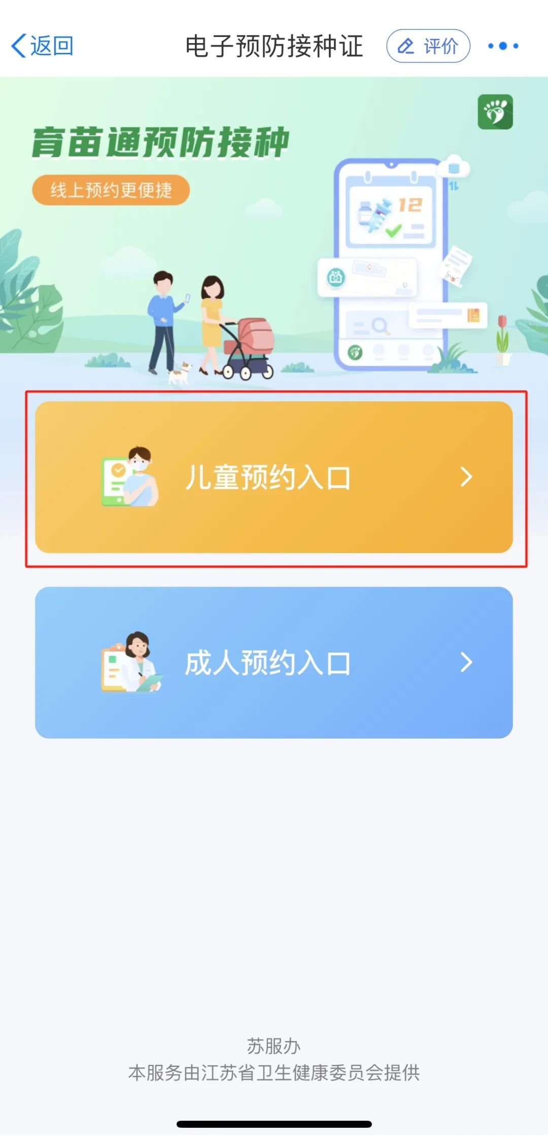 注意:电子预防接种证目前在无锡、南通进行试点,其他设区市居民进入服务后可直接从儿童或成人入口预约疫苗、查询接种记录。
