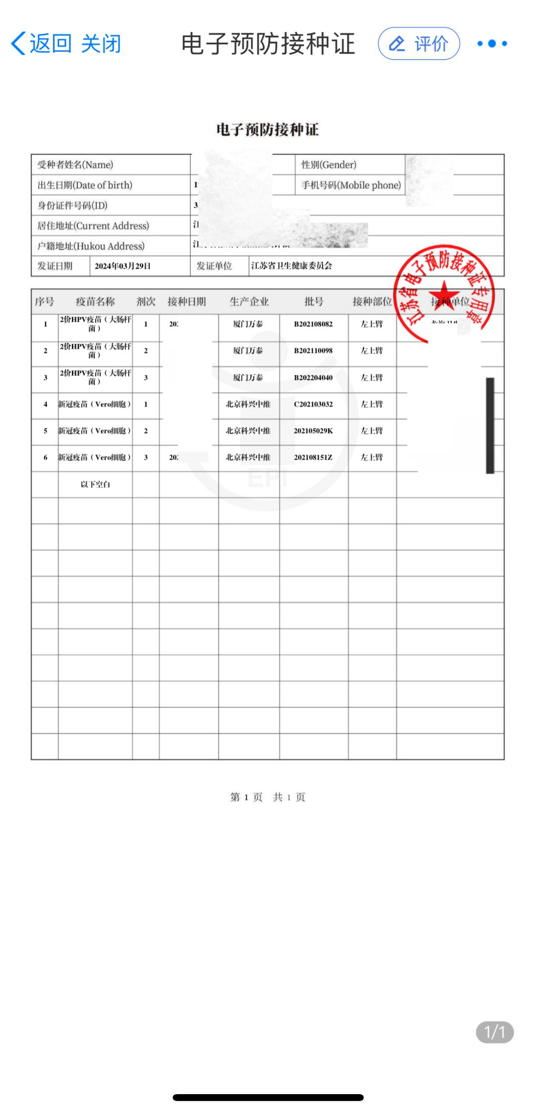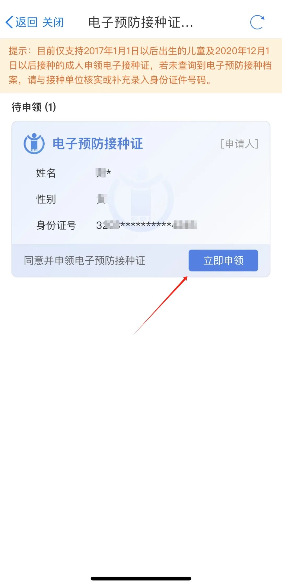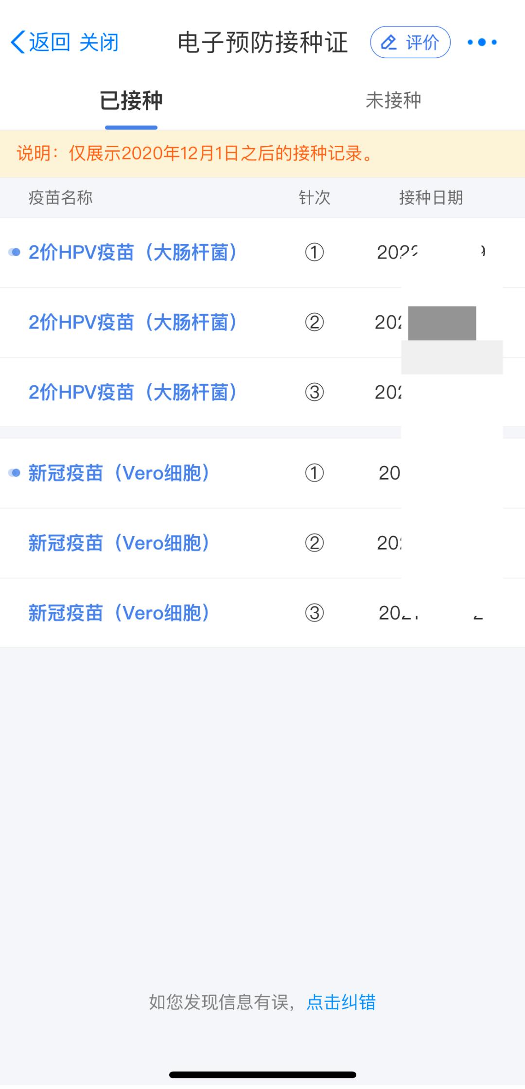 完成疫苗接种,通过接种信息可查询疫苗接种记录。