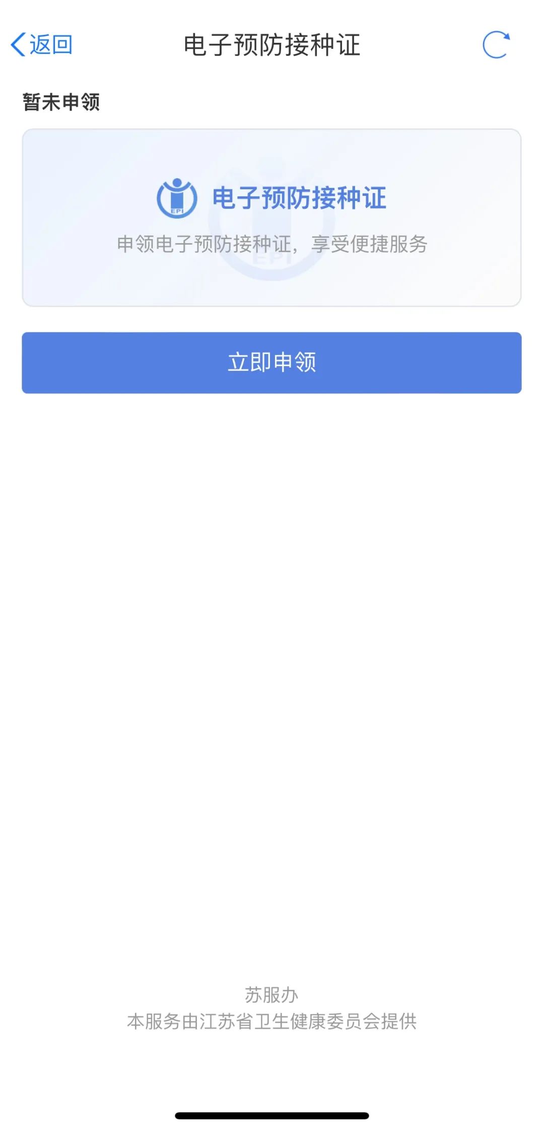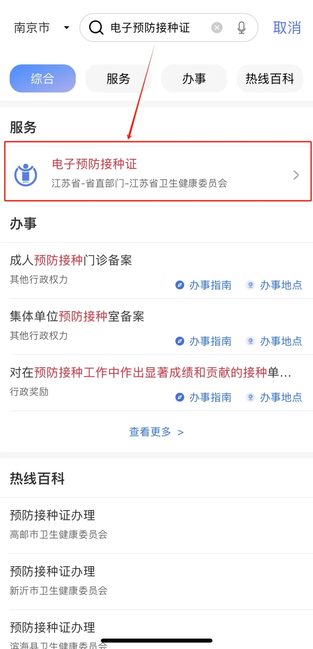 登录“苏服办”APP,在首页搜索“电子预防接种证”,进入服务。