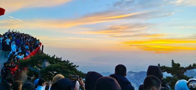 “陡”、“险”在黑夜的笼罩下稍显朦胧,但魅力反增,吸引着人们一探究竟。从9、10点开始攀登,历经8、9个小时于凌晨五六点抵达东峰,恰好可一览最美日出。