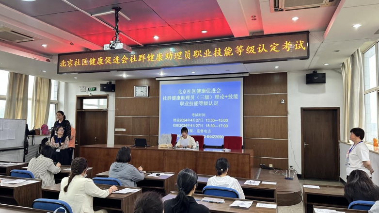 2024年4月27日,由北京社区健康促进会组织开展的社群健康助理员职业技能等级认定考试,在人力资源和社会保障部能力建设中心顺利结束了,来自北京市的各社区、物业、医疗机构、体检机构、保险机构等从业人员参加了本次考试。