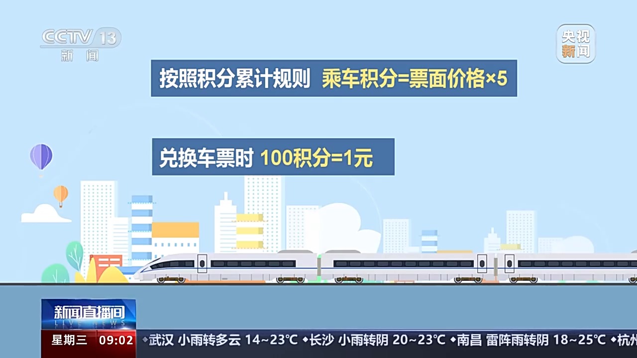 按照积分累计规则,乘车积分=票面价格×5 ;兑换车票时,100积分相当于1元人民币。