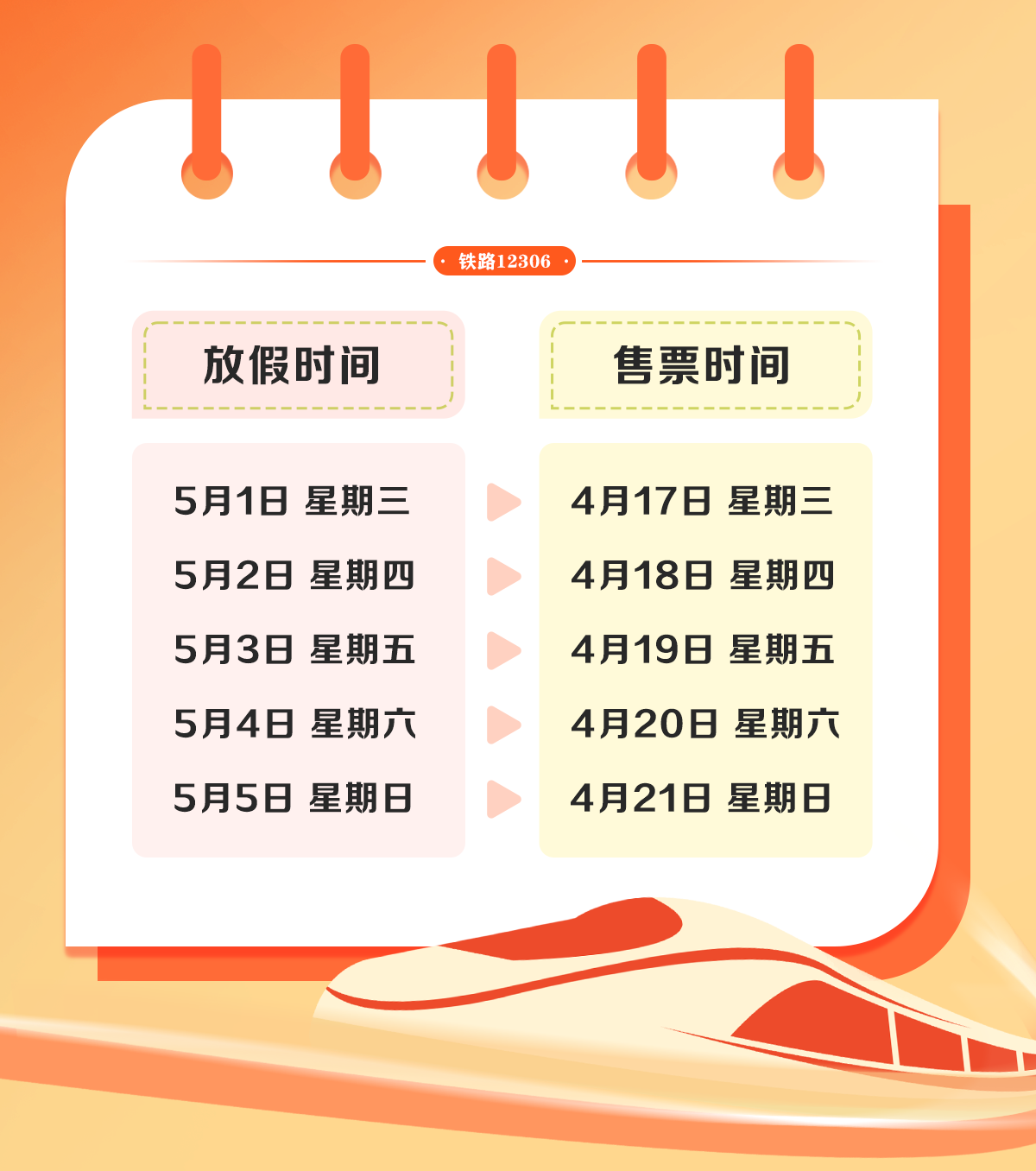 今天(4月17日),铁路开始发售5月1日、也就是“五一”假期的火车票。铁路部门提示,旅客可通过铁路12306网站或手机客户端购买车票。